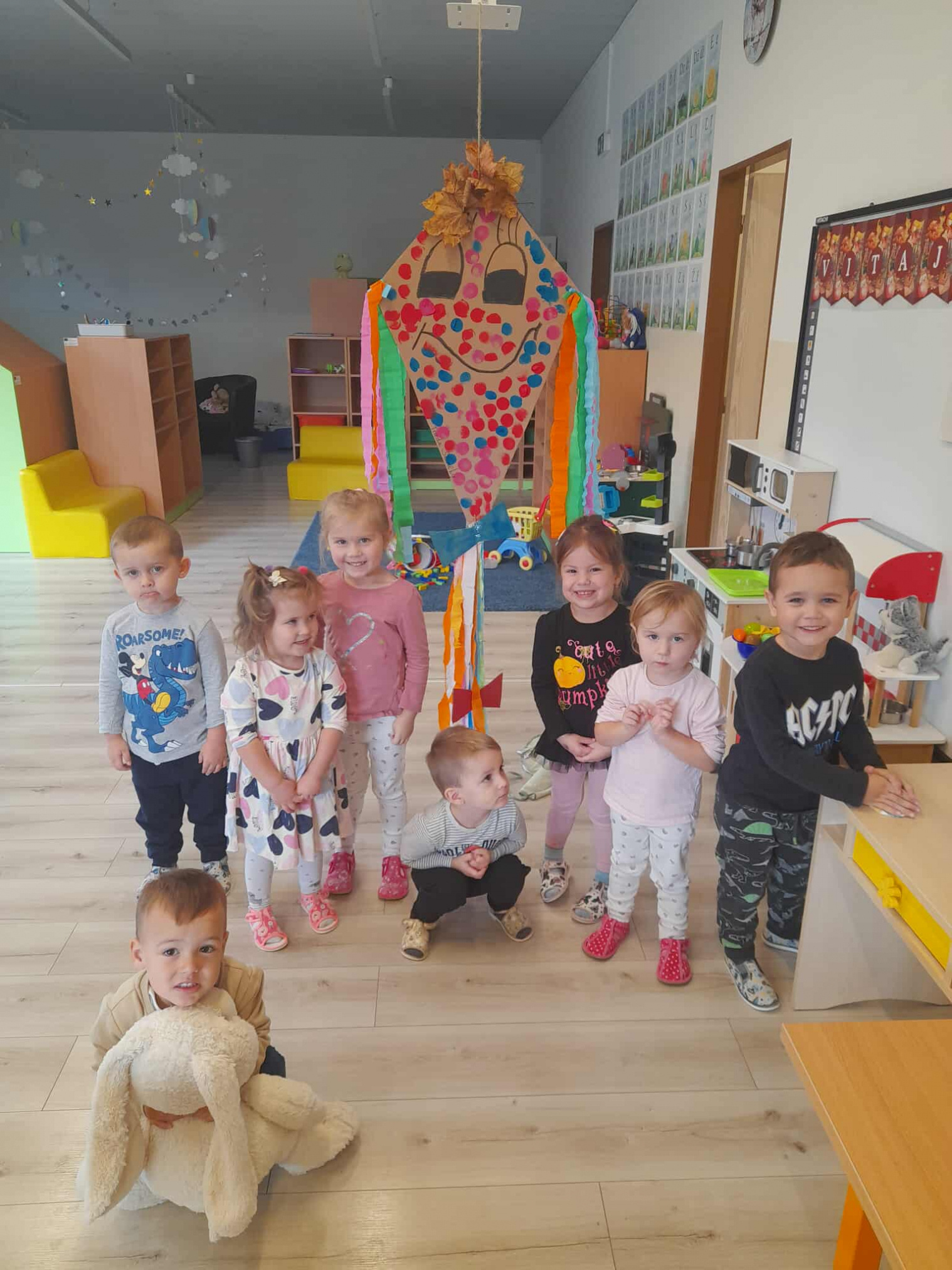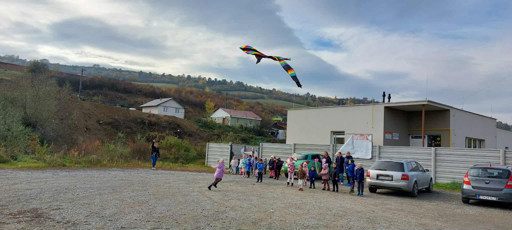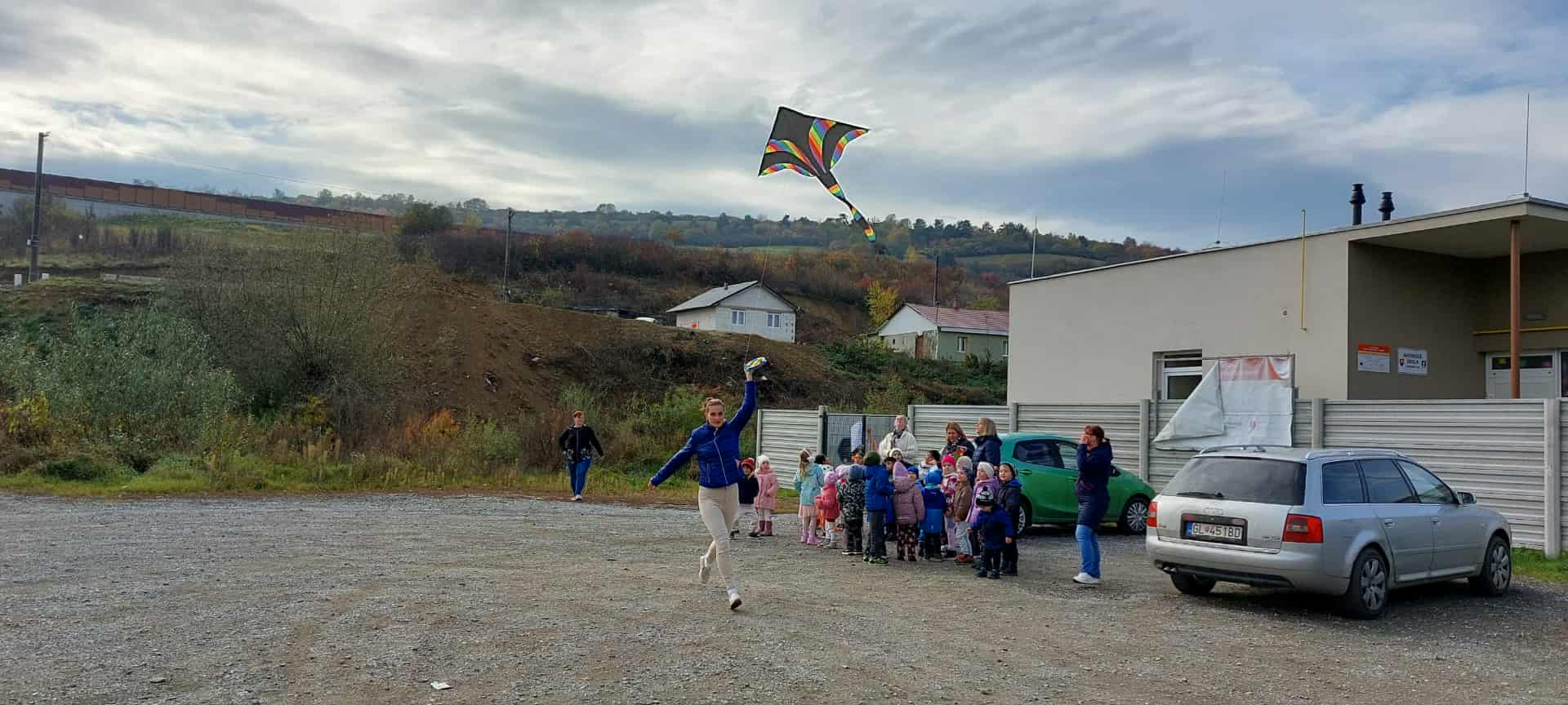 V materskej škôlke sme oslávili príchod jesene púšťaním šarkanov a výzdobou autobusovej zastávky.